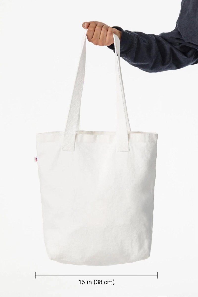 The everyday tote — beach bag, grocery run, class. Sturdy bull denim that softens with use. Big enough to carry everything, simple enough to go with anything. Made in USA.