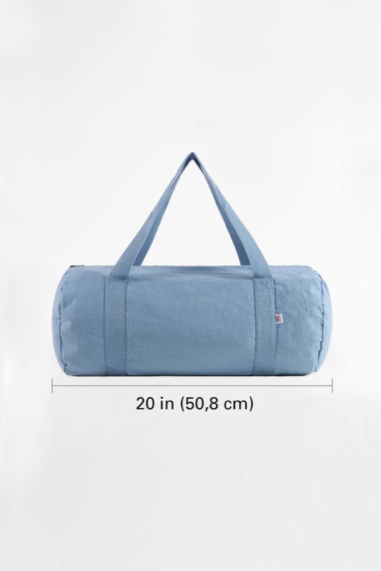 Classic duffel silhouette in heavyweight bull denim. Built to last and ready for the beach, the gym, or wherever the day takes you. Made in USA.
