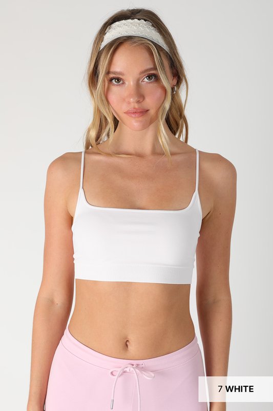 Square neckline bralette — trending silhouette for layering or wearing solo. Seamless construction for a smooth, comfortable fit.